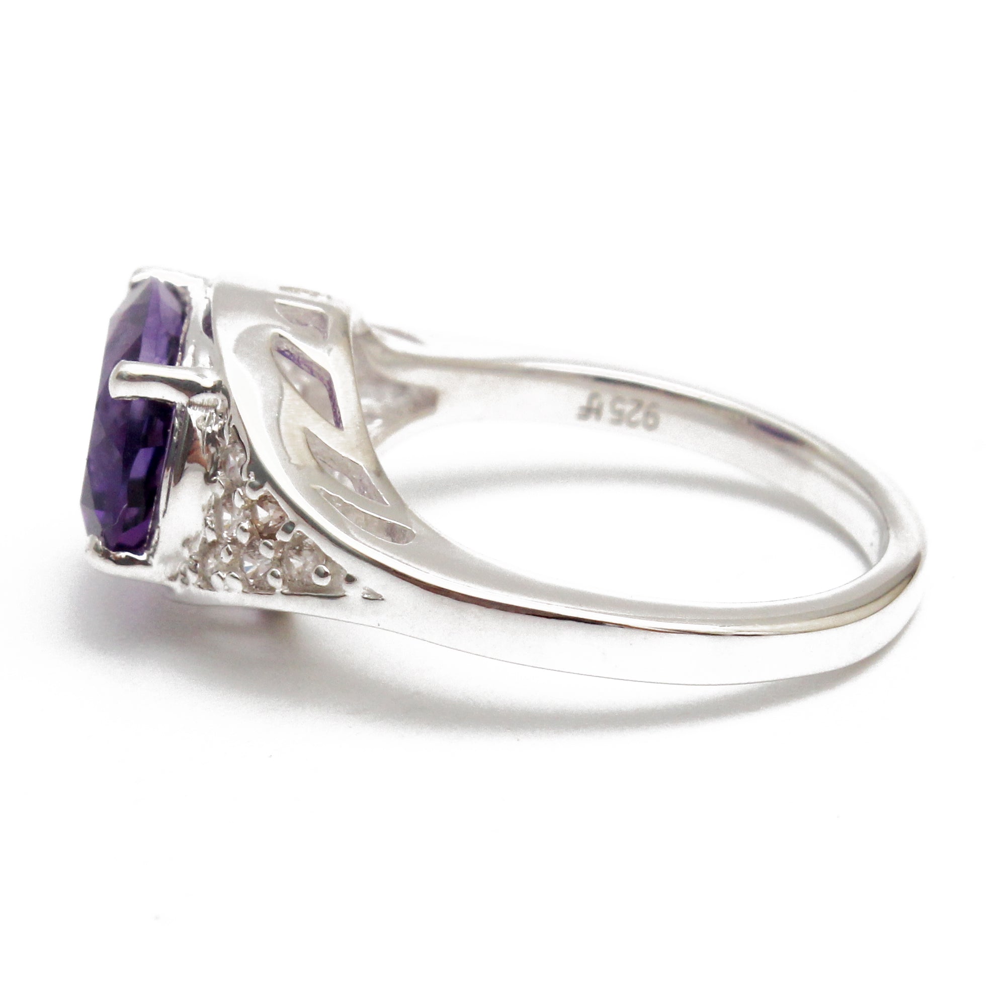 Elevate your style with our stunning 925 Sterling Silver Oval Amethyst Ring. The sparkling CZ accents add a touch of sophistication to this timeless piece. Made with high-quality materials, this ring is not only beautiful but also durable. Perfect for any occasion, it's a must-have for any jewelry collection.