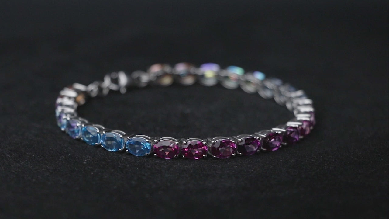 Ready to add some sparkle to your life? This delightful sterling silver bracelet featuring 7x5MM oval shaped multi topaz stones is sure to do the trick! Perfect for a special gift for your wife or girlfriend, or just a fun accessory to finish any look. Add a little light-up-the-room glamour to your day!